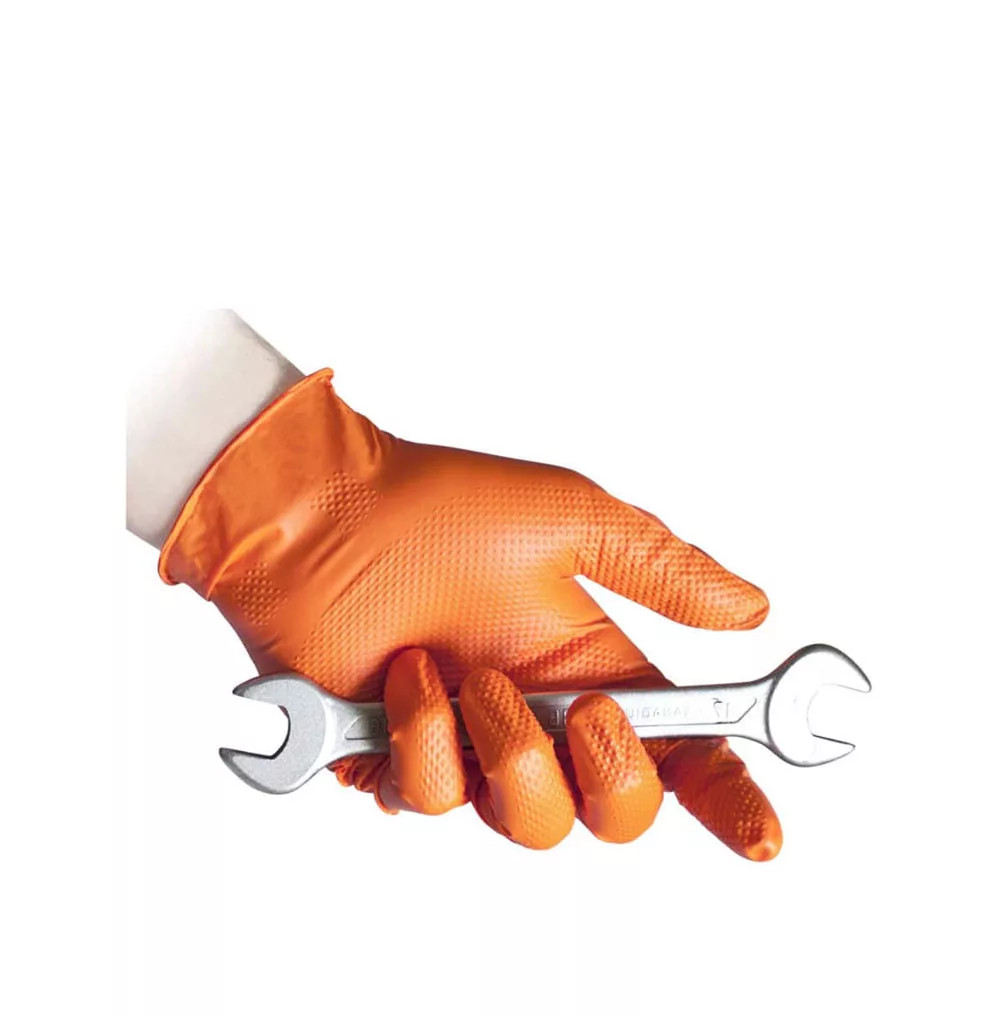 Egyszerhasználatos erősített nitril szerelőkesztyű narancs - Reflexx Full Grip N85 /AUTÓSZERELŐK KEDVENCE/
